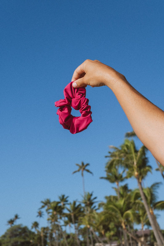Complete your beach style with a scrunchie that matches your swimsuit! Made from recycled swimwear...