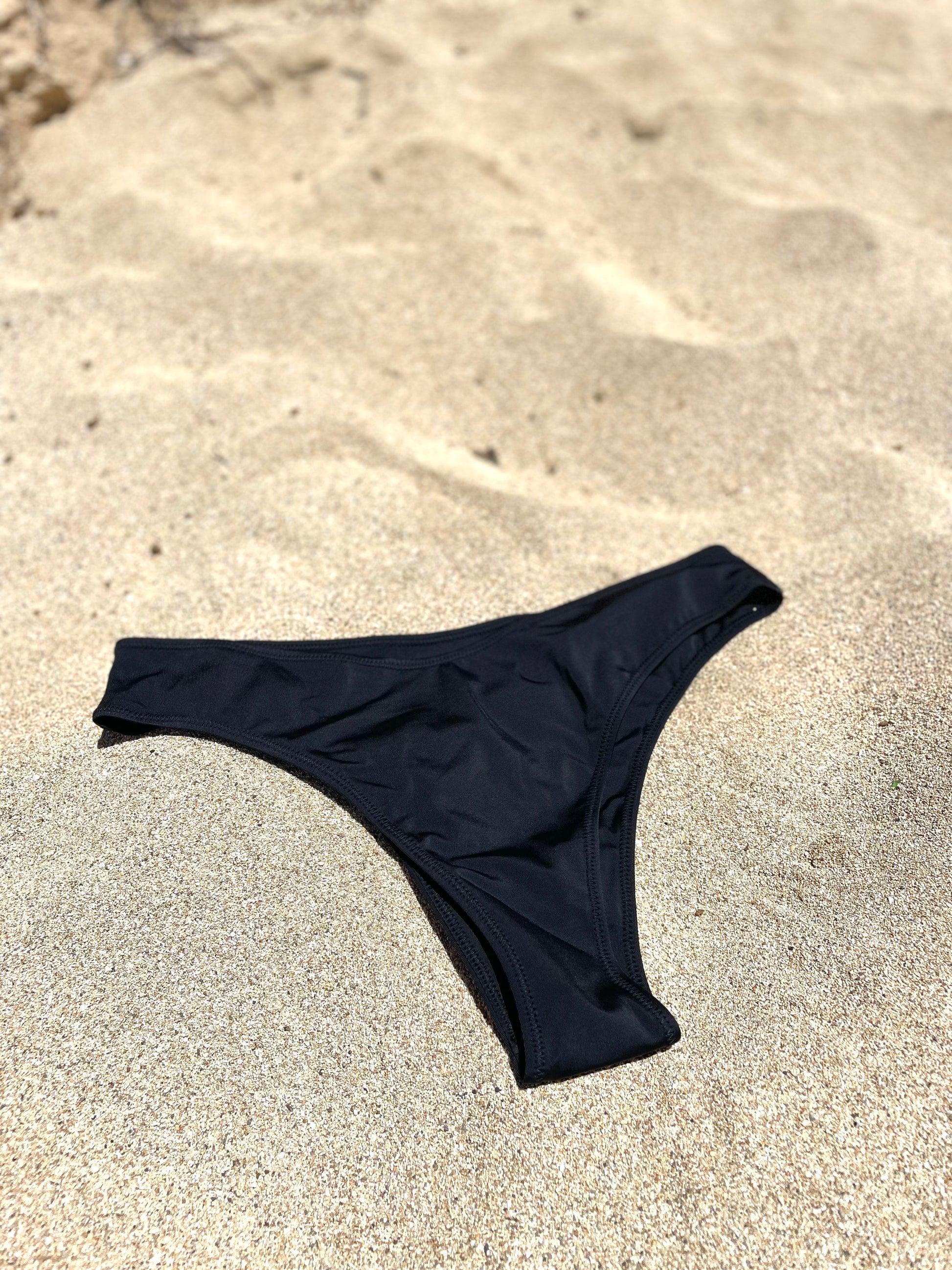 This mid-rise bikini bottom was designed for our curvier ladies who want to show just a bit of cheek but keep things covered up in the front. Available in size L, XL, and 1XL only, this black bikini bottom won't roll down or scrunch up at the hip and is fully double lined. This style is super comfortable and will stay put whether you're stand-up paddle boarding or swimming.