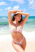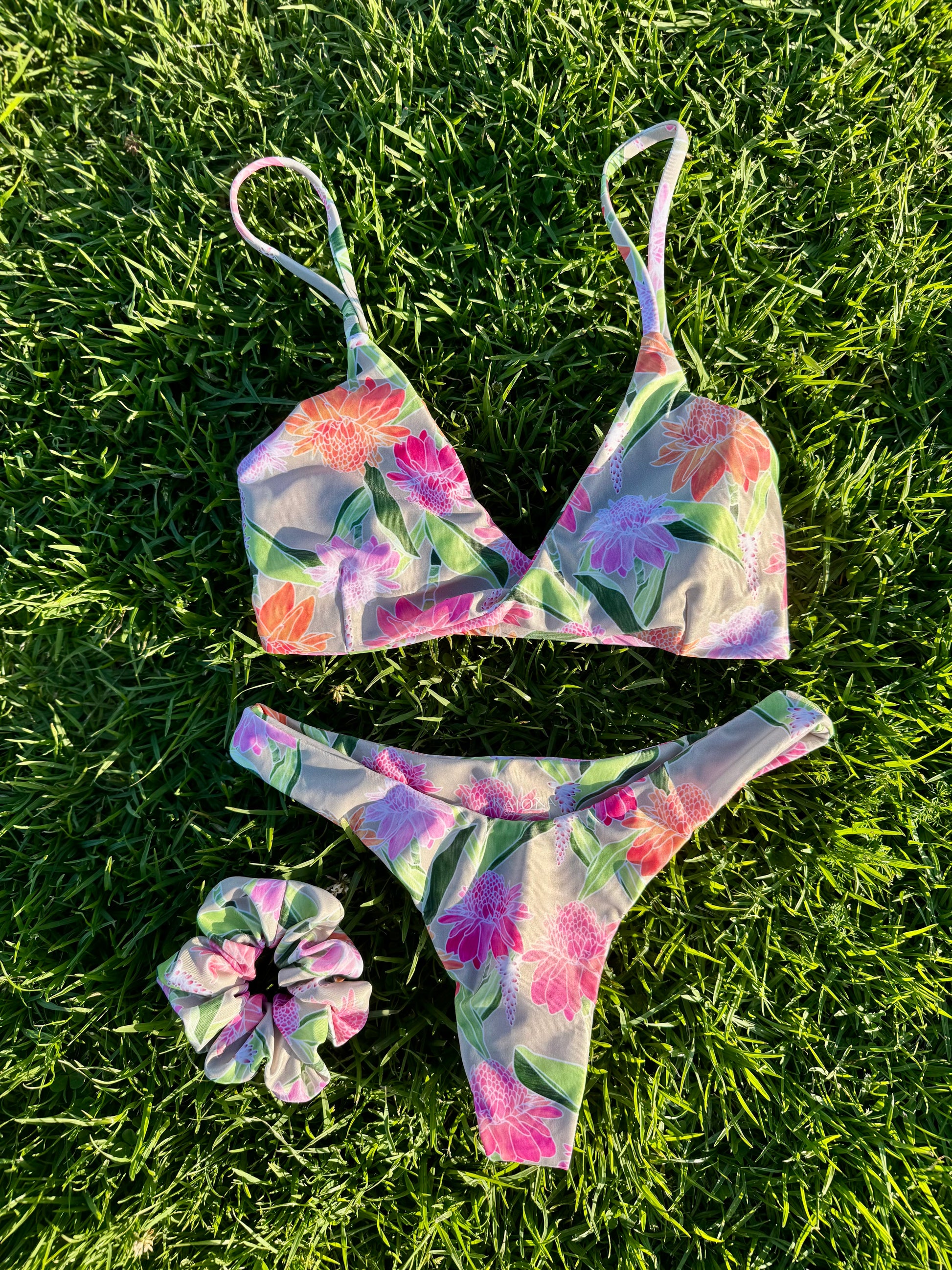 Flattering yet secure, this triangle bikini top features a thick elastic band in the back and a tie that can be done up in different ways without tugging on your neck. The Makua Top is reversible and seamless with a cute twist front detail.