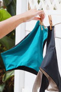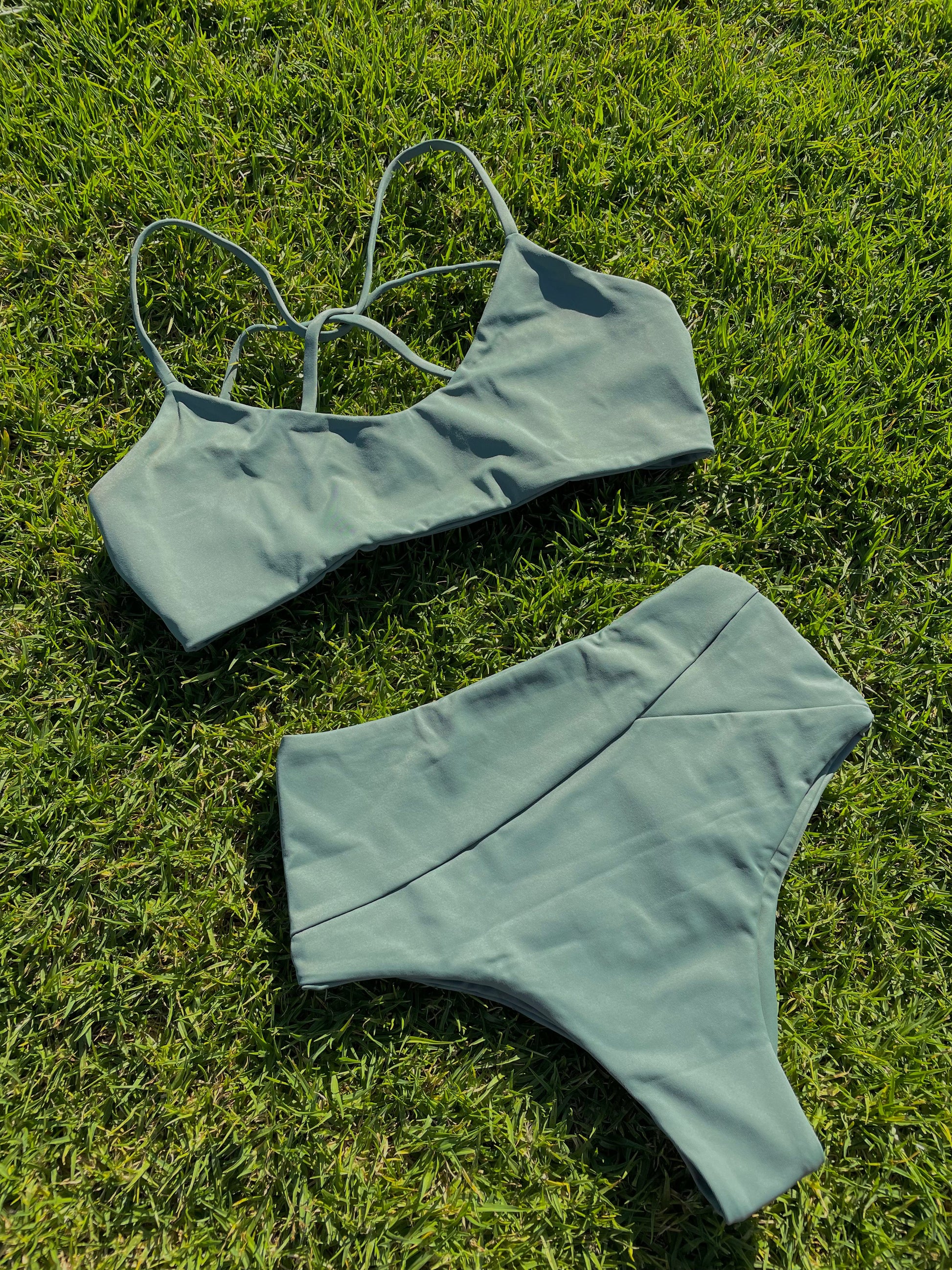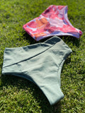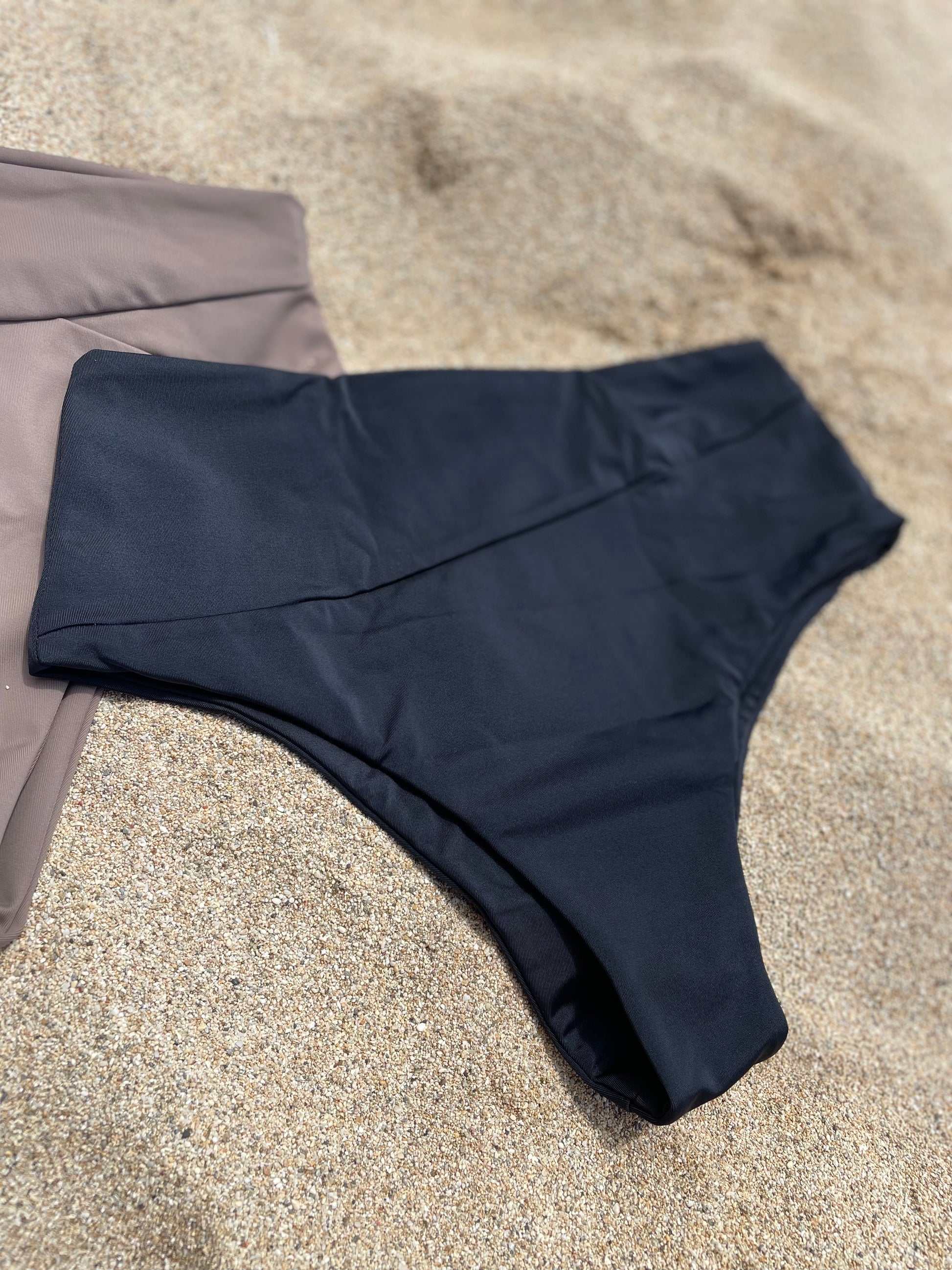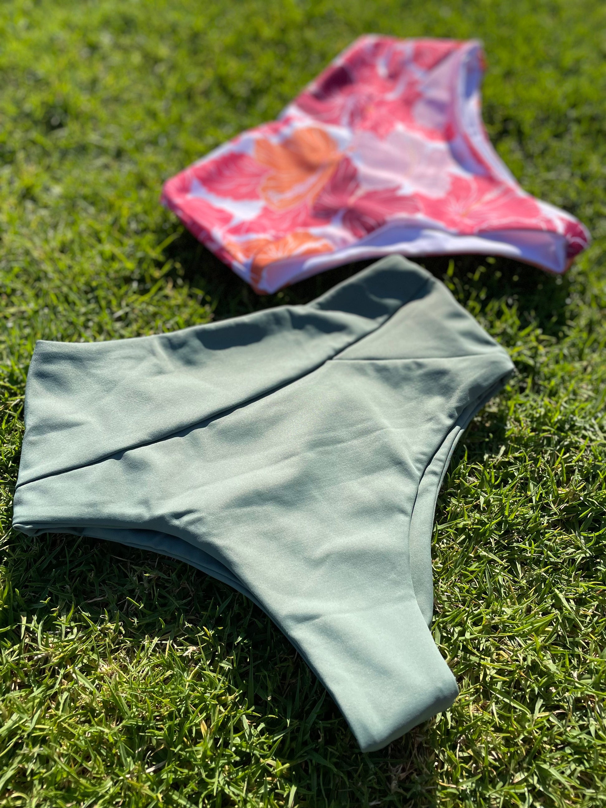 Whether lounging on the shore or paddling out into the surf, the Mānana high waisted bikini bottom will stay in place thanks to the double-lined fabric's outstanding compression. This high waisted cheeky bikini offers full coverage in the front and just the right amount of cheekiness in the back with a cut that accentuates all booty sizes and conforms to fit your body type. Coverage ranges between cheeky to moderate depending on your booty. This high waisted bikini has asymmetrical stitching detail to add some spice to the smooth, polished recycled fabric.