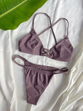 Model in cocoa is wearing a size S top and size S Kuilei Scrunch Bikini Bottom.